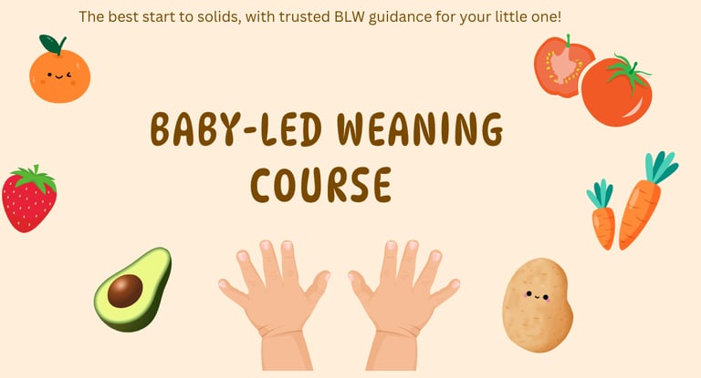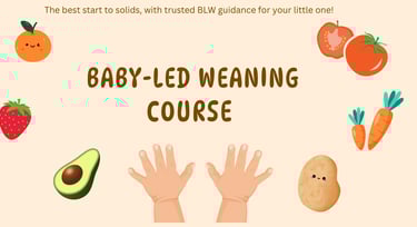 Give your baby the best start with solids without stress or pressure. This gentle video course walks you step-by-step through baby-led weaning, teaching you how to create safe, calm mealtimes and help your little one explore food with confidence.